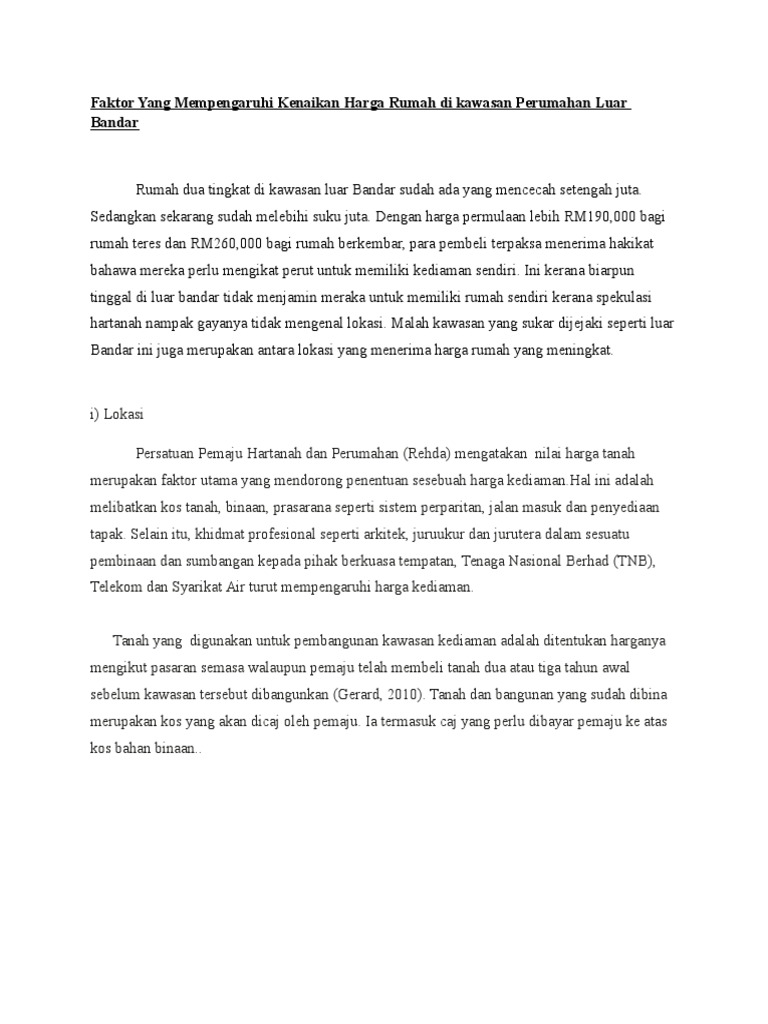 Faktor Yang Mempengaruhi Kenaikan Harga Rumah Di Kawasan Luar Bandar Pdf